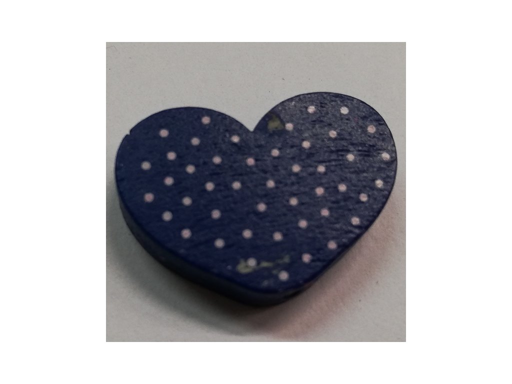 Dřevěné korálky - srdce s puntíky tmavě modré - 25x18mm - 1ks
