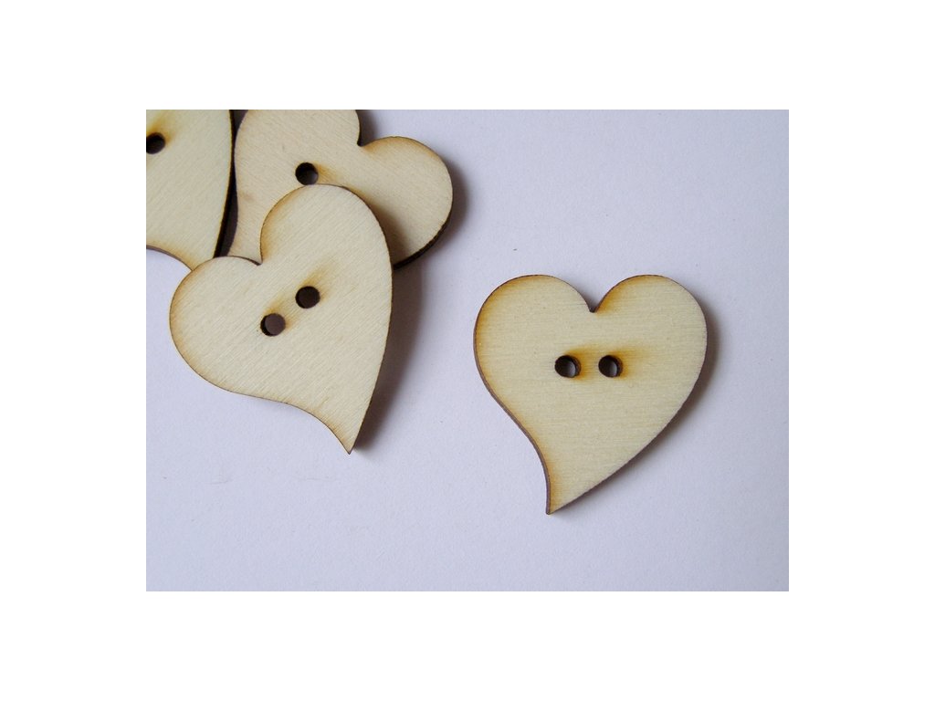 Knoflík z topolové překližky o síle 0,3 cm s dírkami na přišití.