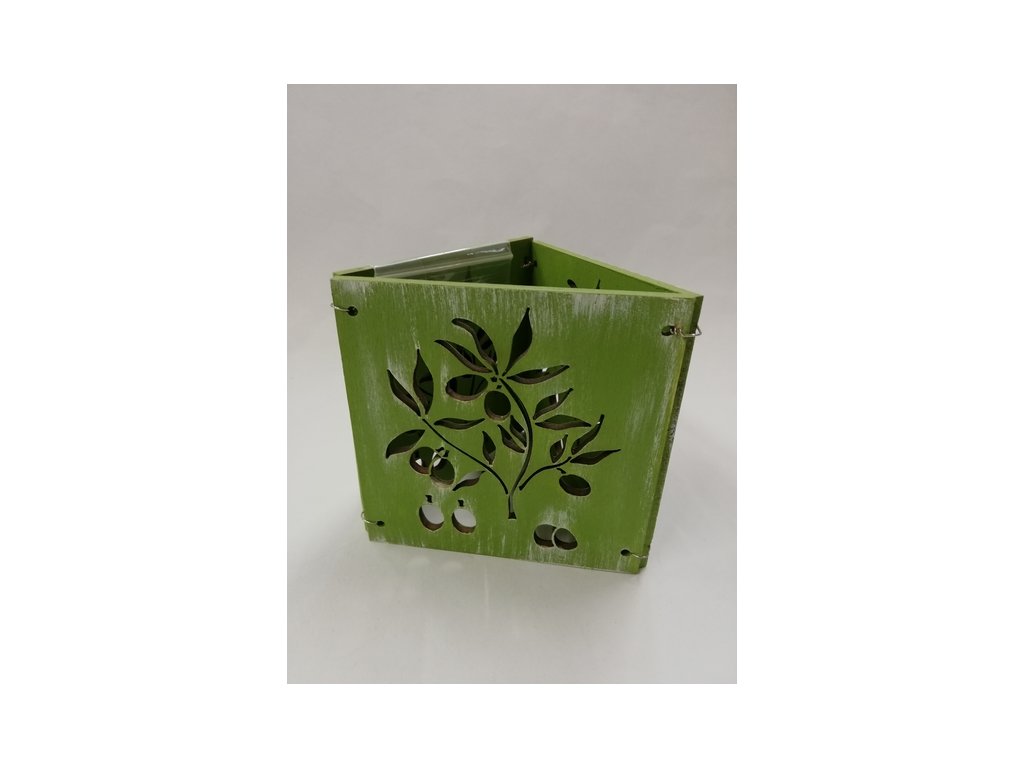 Dřevěný svícen na čajovou svíčku - zelená patina - olivy