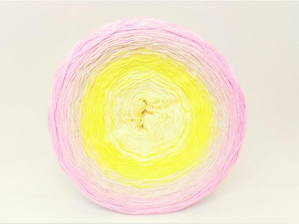 Klubíčko je tzv. třínitka, je tedy smotáno ze 3 vláken. Tyto nitky nejsou pevně spojené, ale jsou smotány volně v klubíčku. Při práci to ale není nijak znát, dělá se s nimi velmi pohodlně. Výrobky budou lehké a vzdušné. Z jednoho klubíčka si můžete vyrobit opravdu velký šátek, šaty pro holky či sukně pro dámy. Lze jej použít také na letní deky do kočárku apod. Výrobky doporučujeme prát v ruce do 40°C, sušit rozložené, nebělit, nežehlit a nedávat do sušičky.