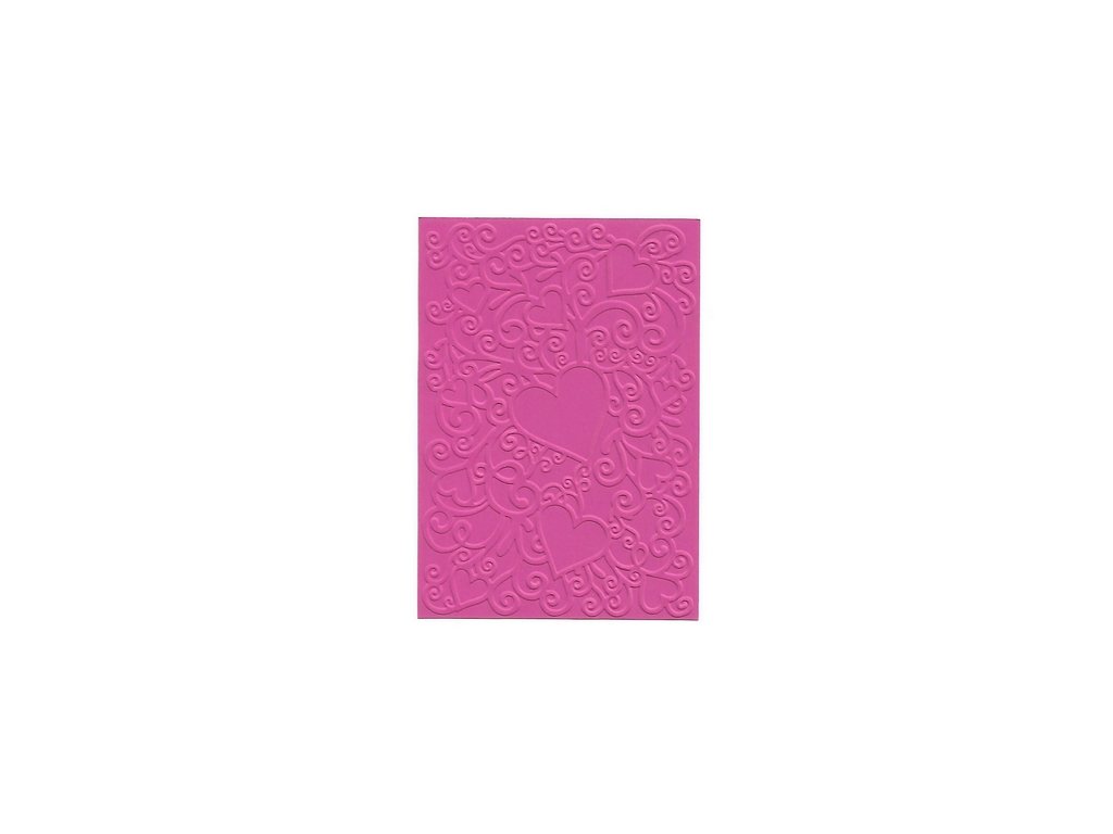 Embosovaná karta A6 - srdce - tm.růžová