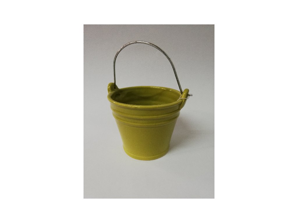 Keramický kbelík zelený, nabízí dostatek prostoru pro kreativní tvorbu a je vhodný jako dekorační doplněk do bytu nebo na zahradu.