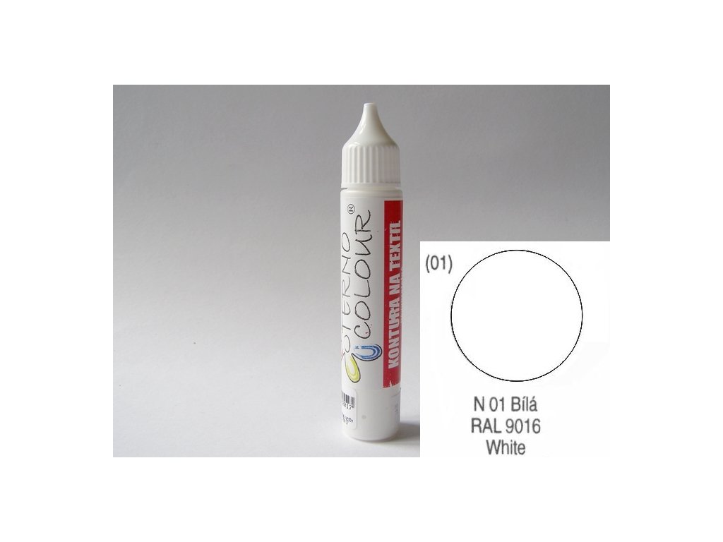 Kontura slouží na předkreslování obrázků na hedvábí a textil, proto je lahvička opatřena uzávěrem s aplikátorem.