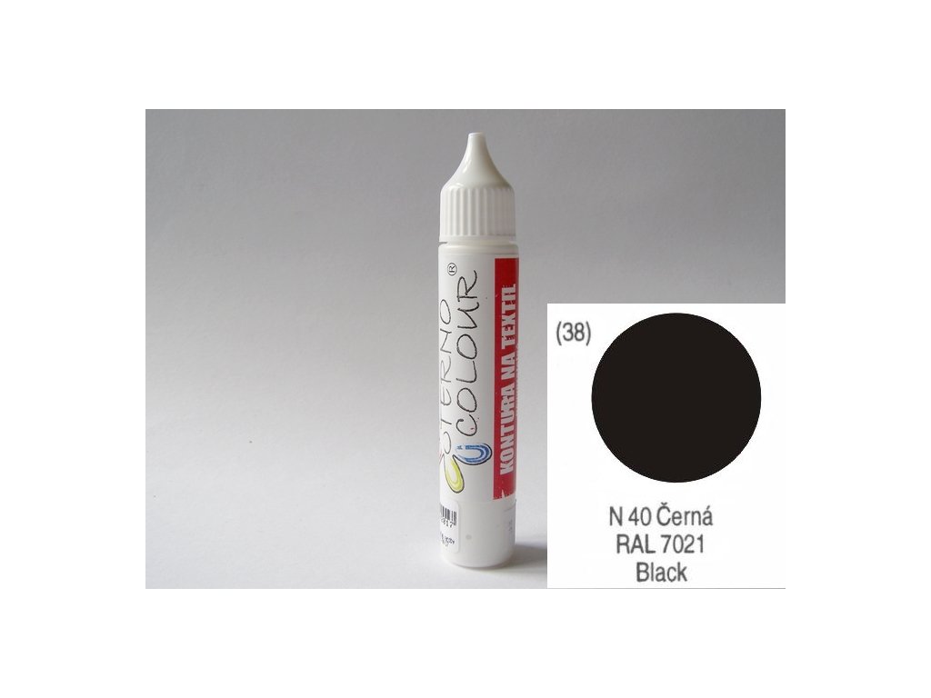 Kontura slouží na předkreslování obrázků na hedvábí a textil, proto je lahvička opatřena uzávěrem s aplikátorem.