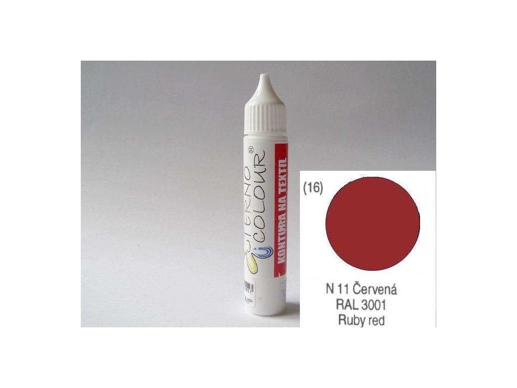 Kontura slouží na předkreslování obrázků na hedvábí a textil, proto je lahvička opatřena uzávěrem s aplikátorem.