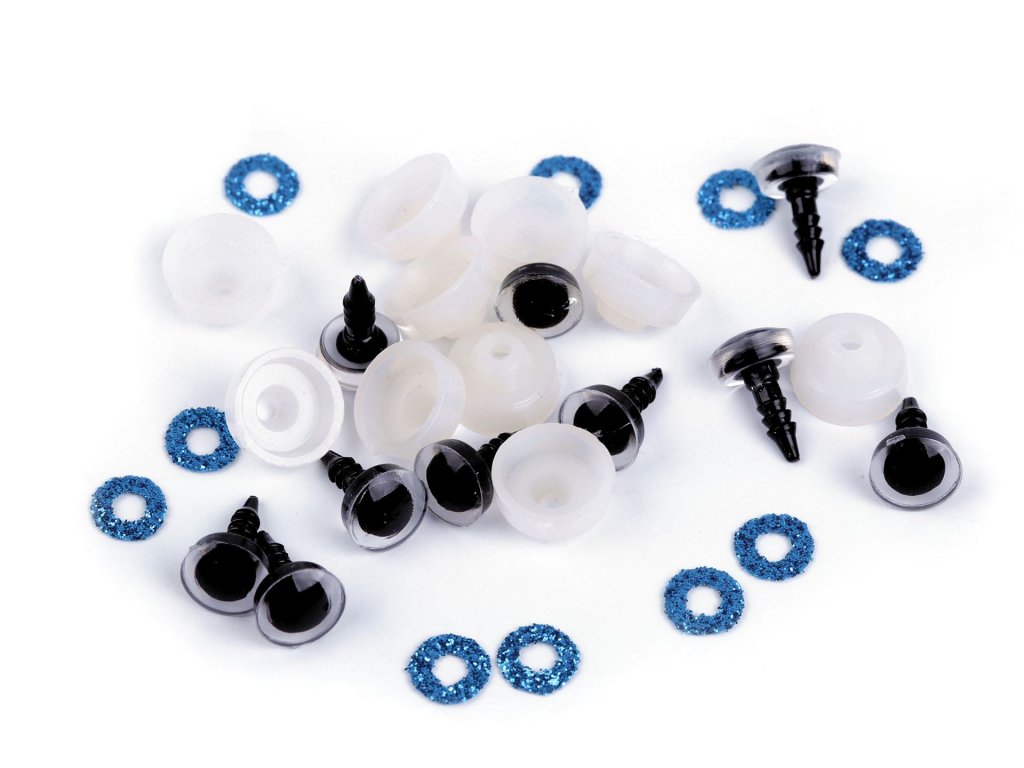 Oči glitrové s pojistkou Ø10 mm - modrá safírová - sada 2ks
