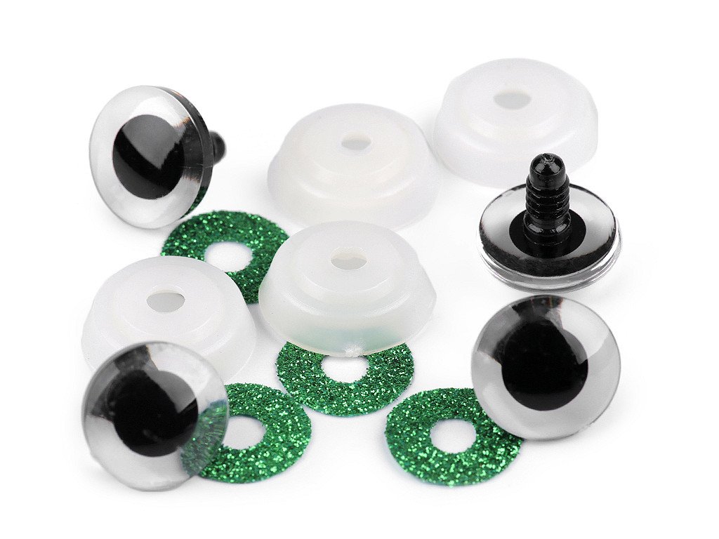 Oči glitrové s pojistkou Ø20 mm - zelené - sada 2ks