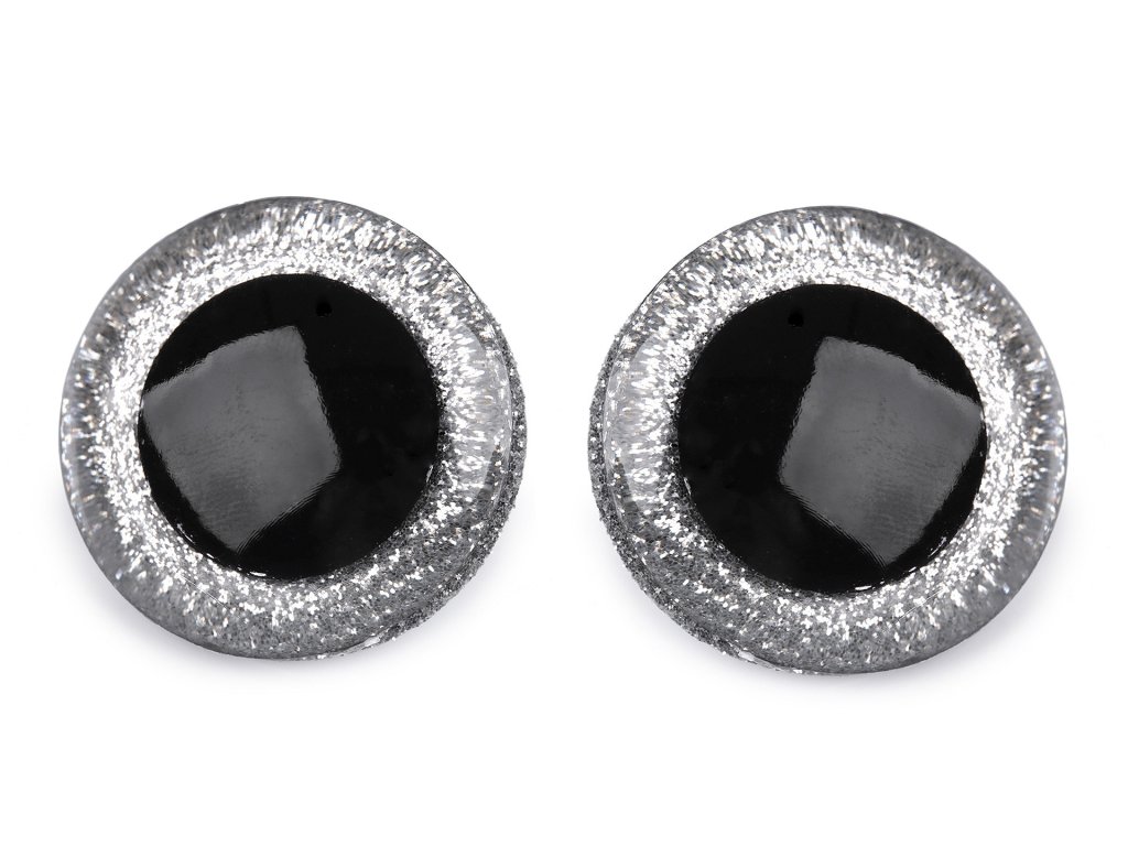 Oči glitrové s pojistkou Ø40 mm - stříbrné - sada 2ks