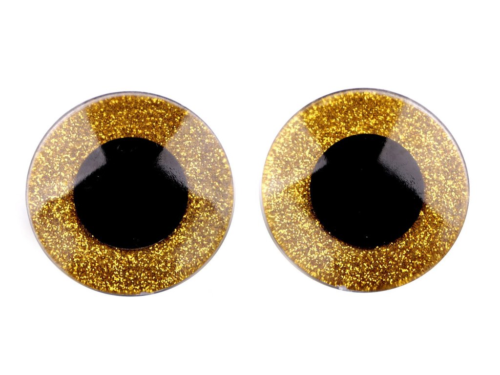 Oči glitrové s pojistkou Ø40 mm - zlaté - sada 2ks