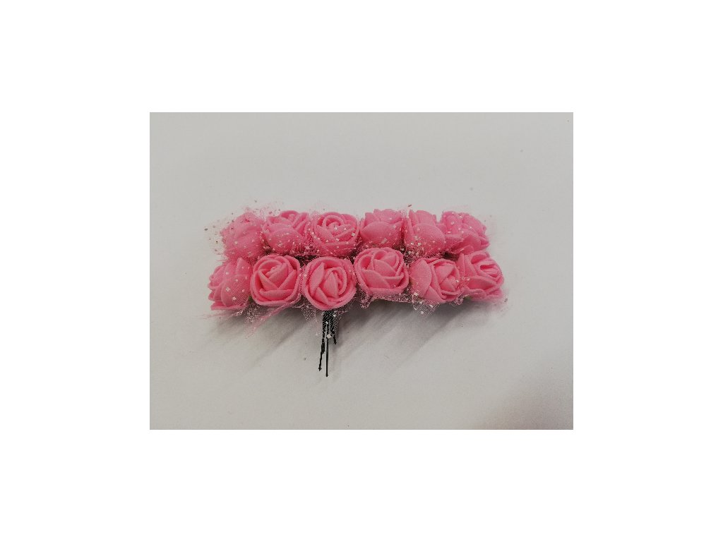 Pěnová růžička dekorační svazek 12ks - růžová se závojem