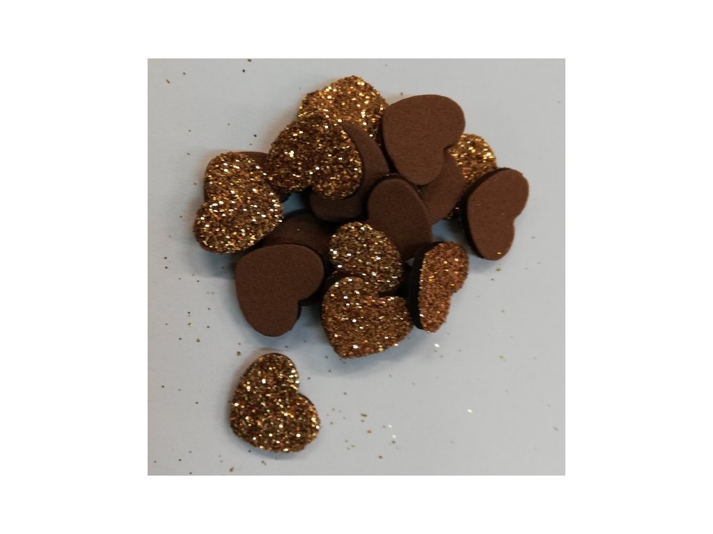 Pěnové dekorační srdíčko se třpytkami - hnědé - 3x2,5cm