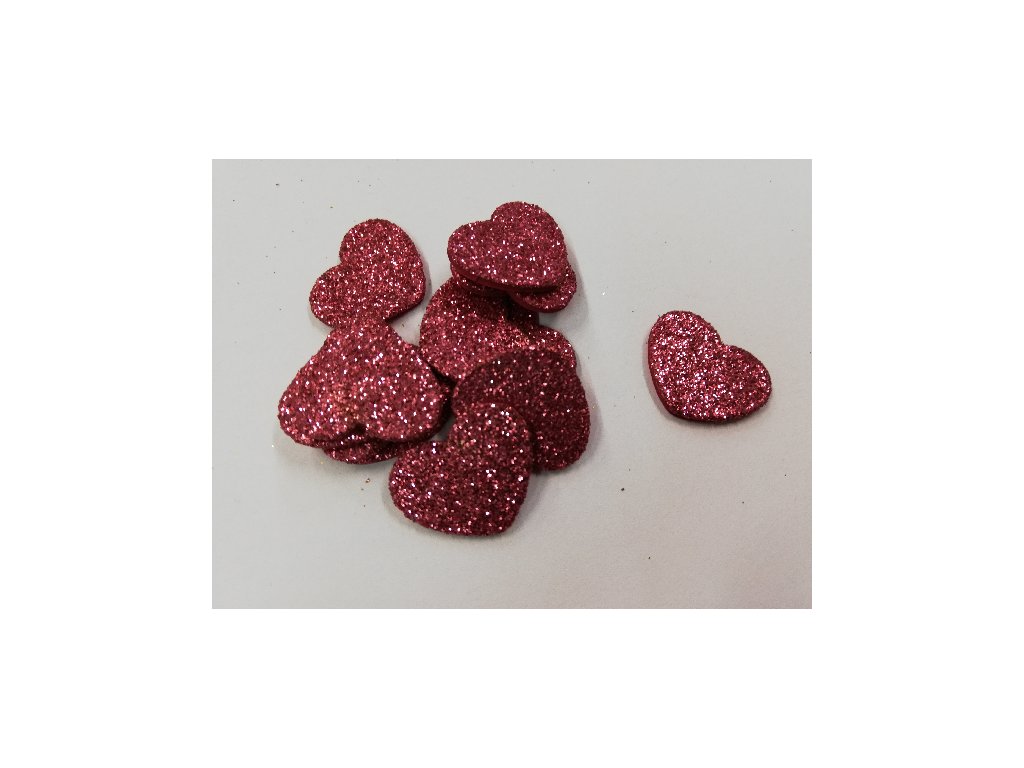 Pěnové dekorační srdíčko se třpytkami - růžové - 2,5x2cm