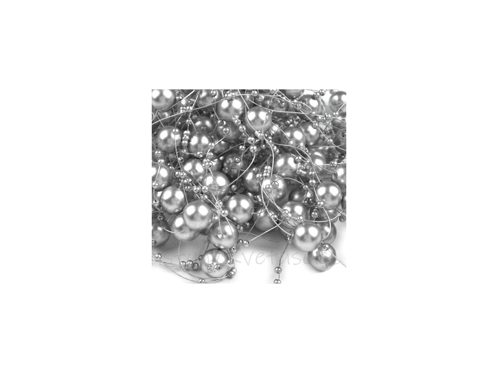 Perličky na silonu 12mm - stříbrná - délka 130mm