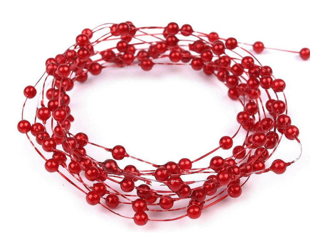 Perličky na silonu 3mm - červenohnědá - délka 130mm