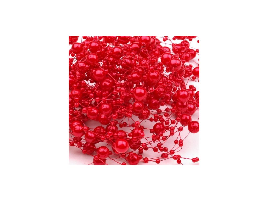 Perličky na silonu 7mm - červená jahoda - délka 130mm