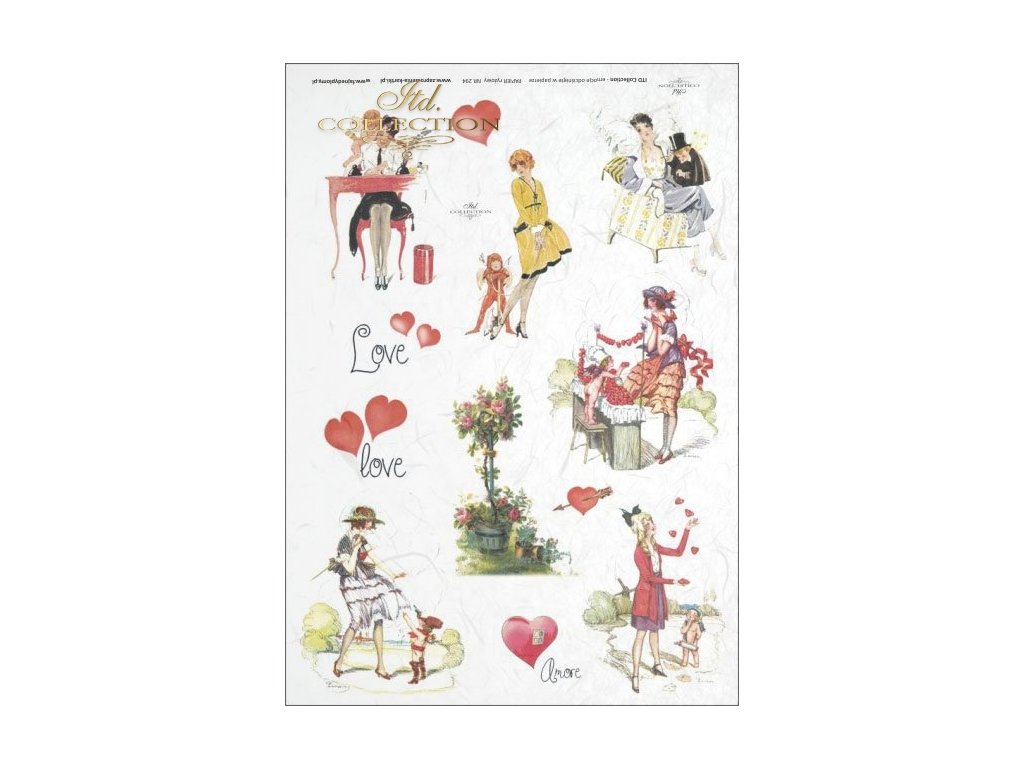 Rýžový papír A4 pro tvoření ITD - Love, láska, amor, srdíčka - R0294