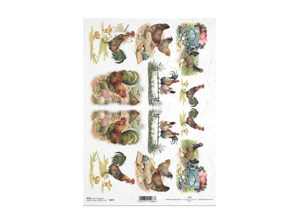 Rýžový papír na decoupage ITD - Jaro, kohoutek, slepička - R0471