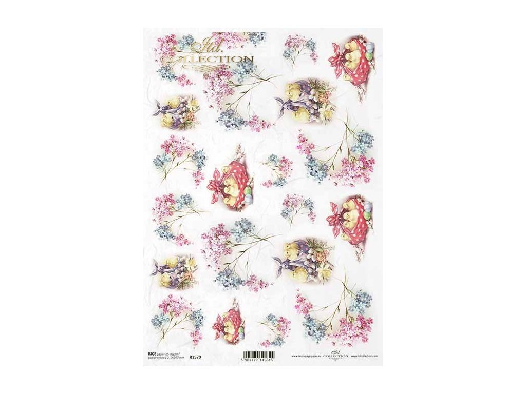 Rýžový papír na decoupage ITD - Jaro, pomněnky, kuřátka v šátku - R1579
