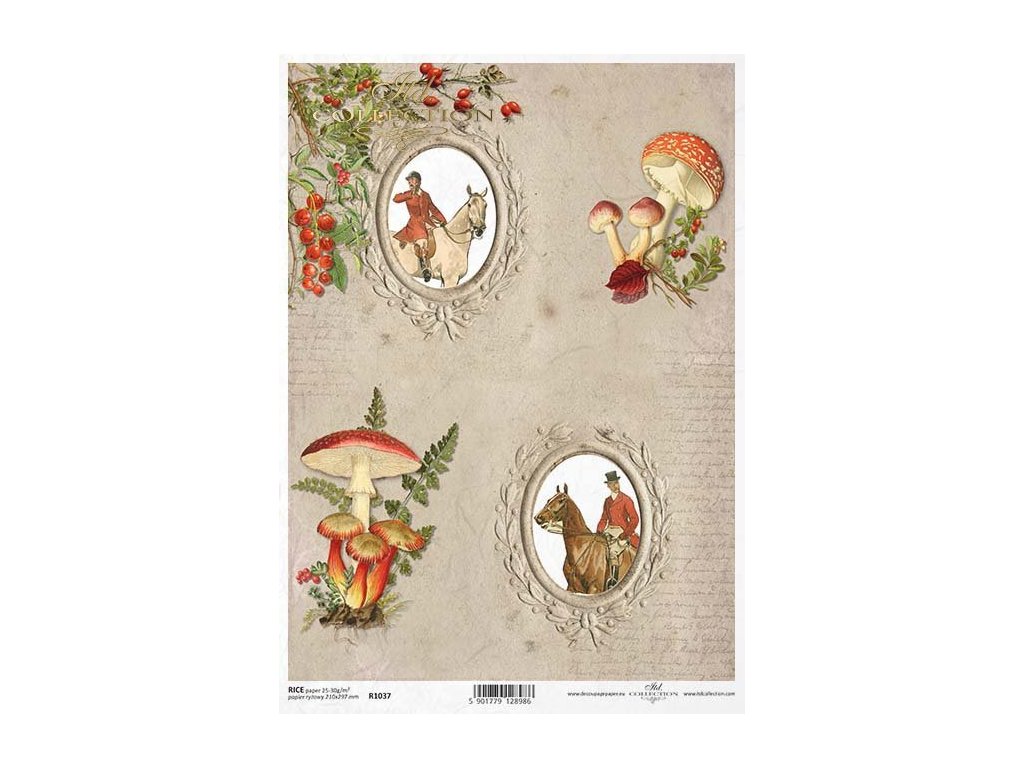 Rýžový papír na decoupage ITD - Jezdec, kůň, houby, šípky - R1037