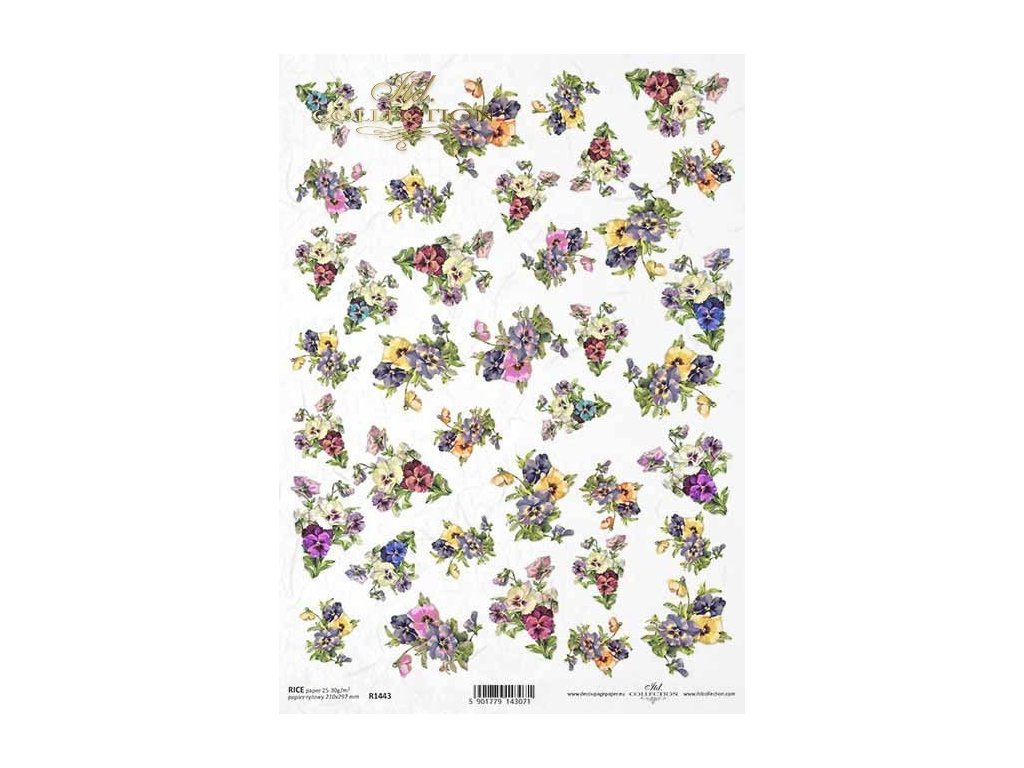 Rýžový papír na decoupage ITD - Macešky, malá kvítka - R1443
