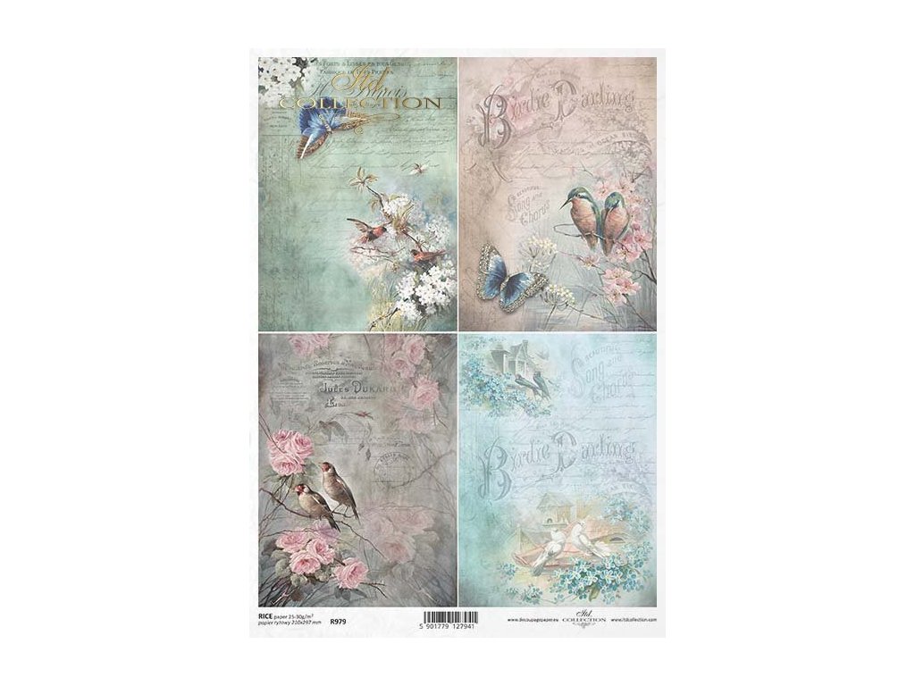 Rýžový papír na decoupage ITD - Motýl, písmo, ptáci - R0979