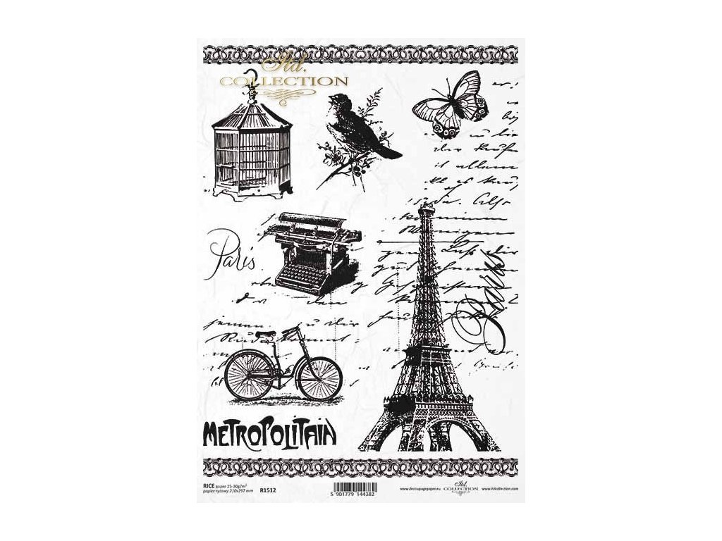 Rýžový papír na decoupage ITD - Paris, metropolitain,písmo, klícka - R1512