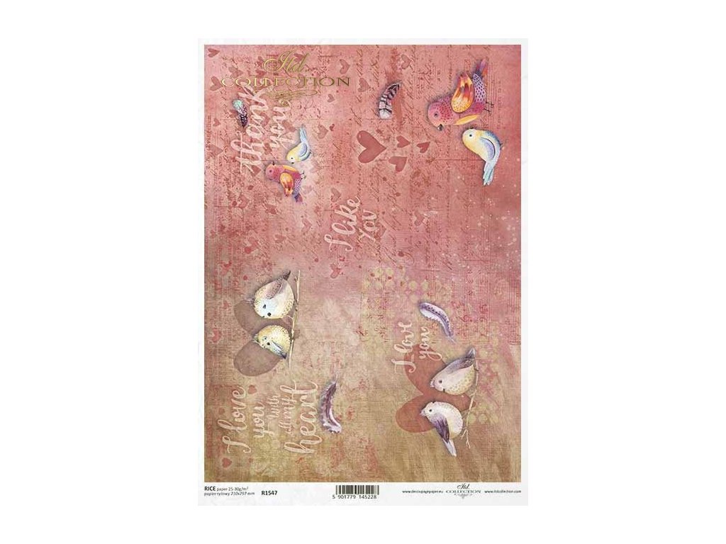 Rýžový papír na decoupage ITD - Ptáčci, srdíčka, peříčka - R1547