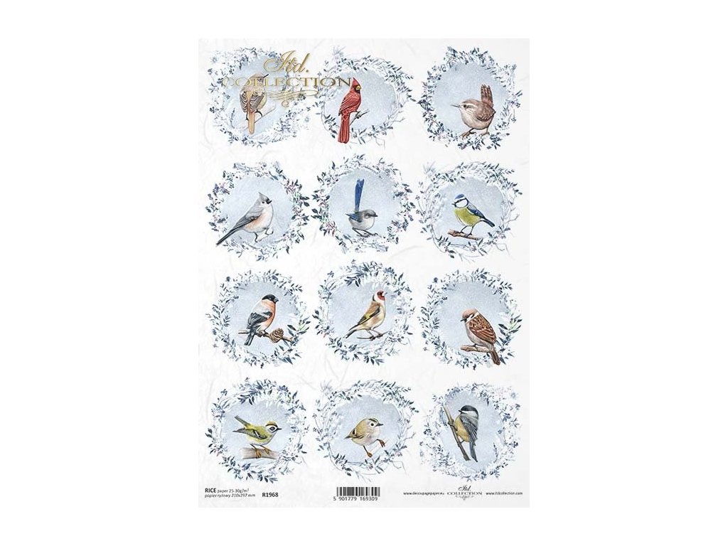 Rýžový papír na decoupage ITD - Ptáček, věneček, zima - R1968