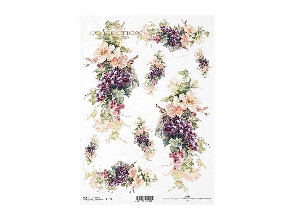 Rýžový papír na decoupage ITD - Růže, hrozny - R1102