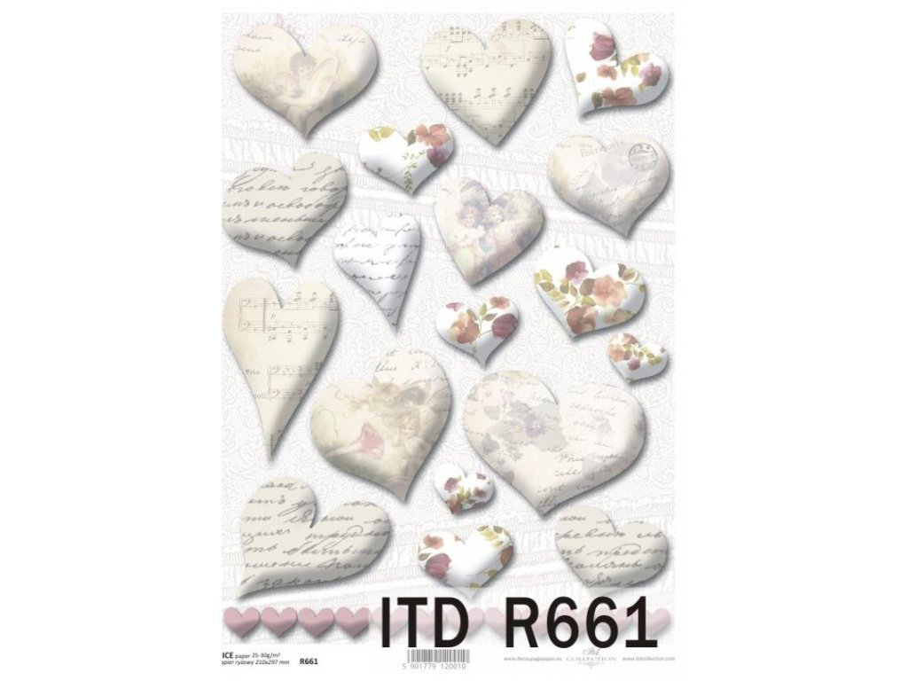 Rýžový papír na decoupage ITD - Srdce písmo bílé - R0661