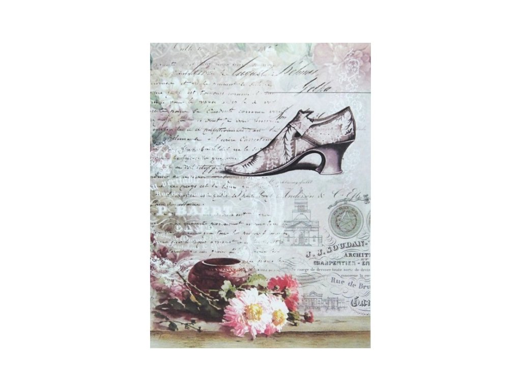 Rýžový papír na decoupage ITD - Střevíc a písmo - R0706