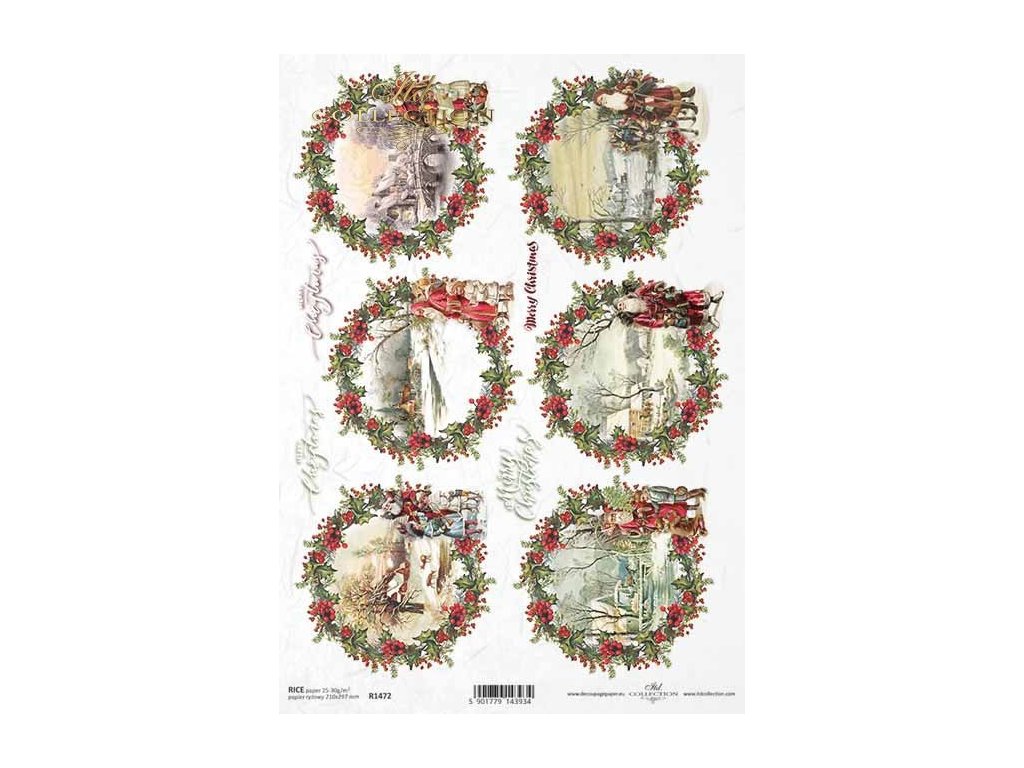 Rýžový papír na decoupage ITD - Vánoce,cesmína,krajinky - R1472