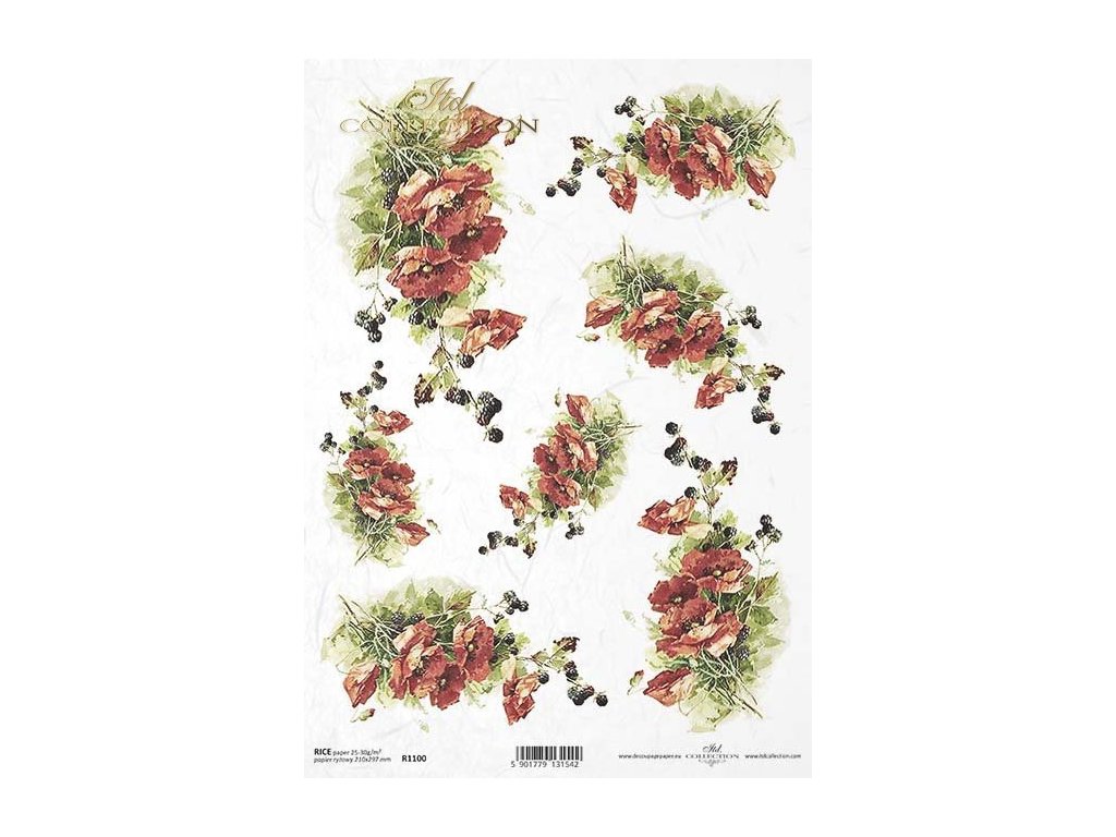 Rýžový papír na decoupage ITD - Vlčí máky, ostružiny - R1100