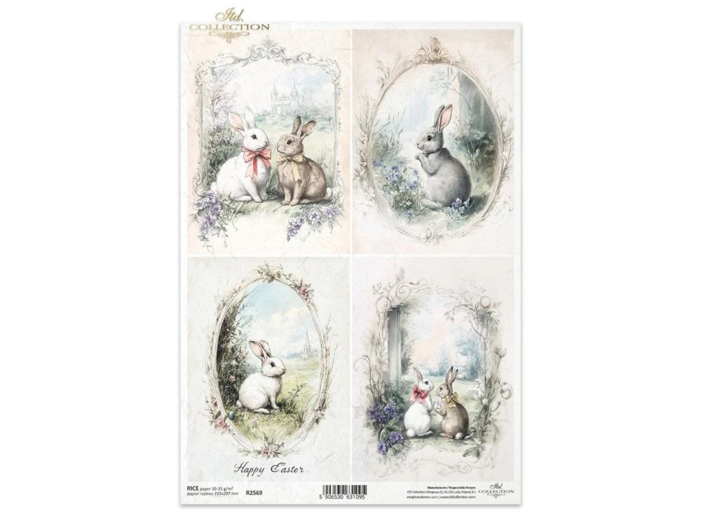 Rýžový papír na decoupage ITD - Zajíci v oválku - R2569