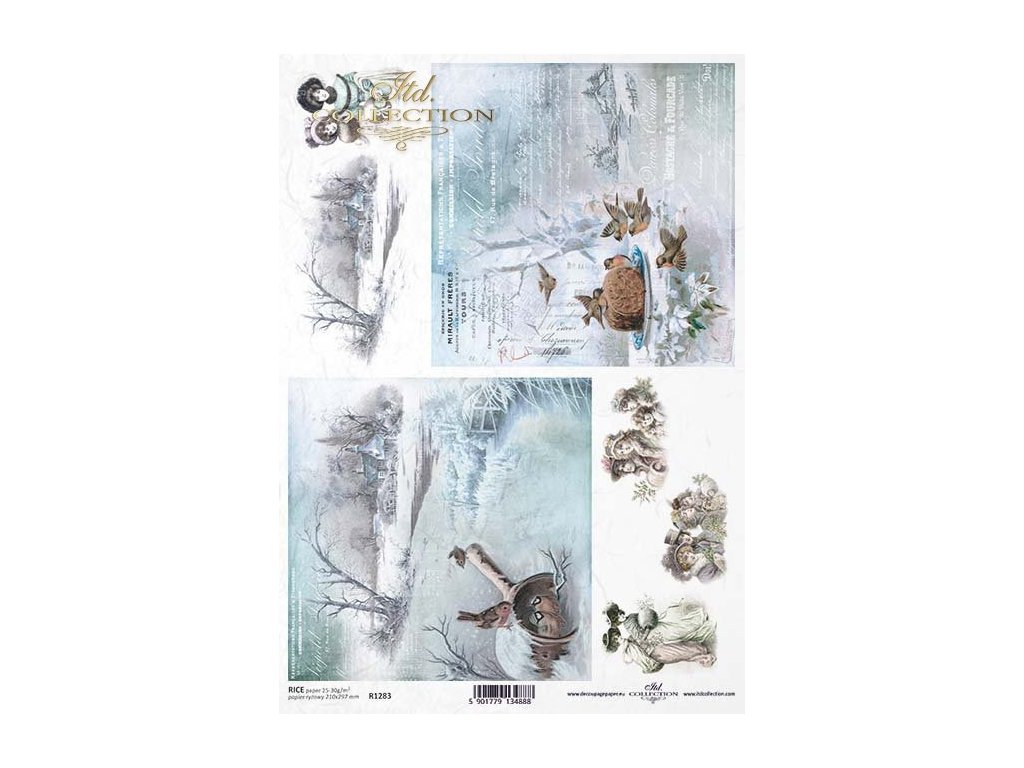 Rýžový papír na decoupage ITD - Zima,krajina,ptáci,děti - R1283