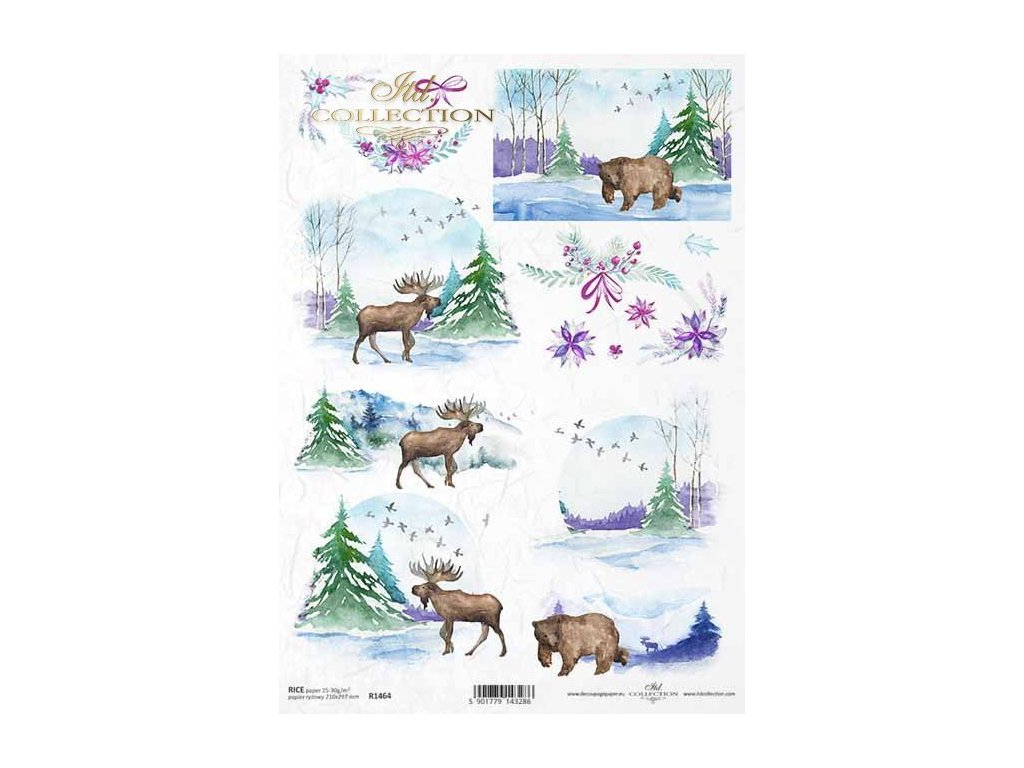 Rýžový papír na decoupage ITD - Zimní krajinky, medvěd,los - R1464