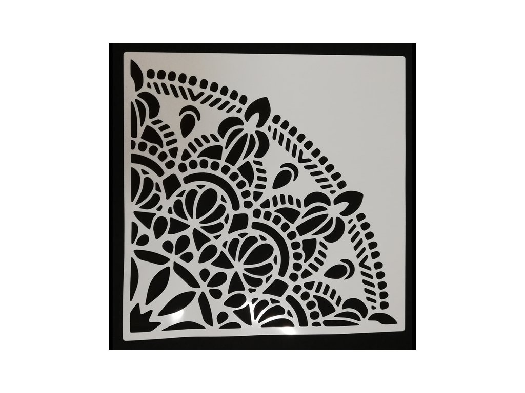 Je vyrobena z plastu a je vhodná pro práci s papírem, textilem nebo všude tam, kde potřebujete vytvořit vzor. Použít můžete všechny barvy dle povrchu, na který nanášíte daný motiv. Na papír lze použít spreje s barvami na vodní bázi, na textil lze použít textilní barvy ve spreji nebo nanášet barvu houbičkou, na také lze použít akrylové barvy a techniku tupování nebo nanášení strukturovacích past pomocí špachtle.