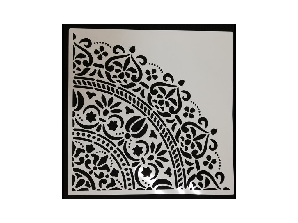 Je vyrobena z plastu a je vhodná pro práci s papírem, textilem nebo všude tam, kde potřebujete vytvořit vzor. Použít můžete všechny barvy dle povrchu, na který nanášíte daný motiv. Na papír lze použít spreje s barvami na vodní bázi, na textil lze použít textilní barvy ve spreji nebo nanášet barvu houbičkou, na také lze použít akrylové barvy a techniku tupování nebo nanášení strukturovacích past pomocí špachtle.