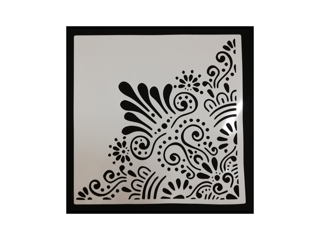 Je vyrobena z plastu a je vhodná pro práci s papírem, textilem nebo všude tam, kde potřebujete vytvořit vzor. Použít můžete všechny barvy dle povrchu, na který nanášíte daný motiv. Na papír lze použít spreje s barvami na vodní bázi, na textil lze použít textilní barvy ve spreji nebo nanášet barvu houbičkou, na také lze použít akrylové barvy a techniku tupování nebo nanášení strukturovacích past pomocí špachtle.