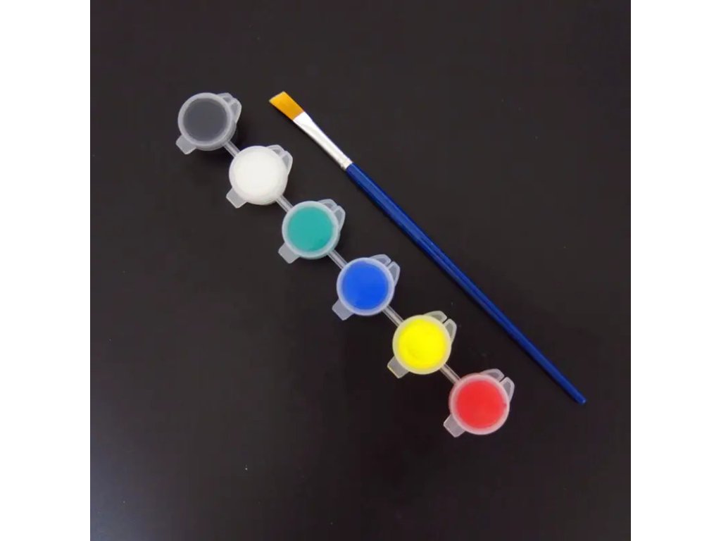 Sada akrylových barev se 6 základními barvami, syntetickými hranatými štětci a hmoždinkovou rukojetí – zahrnuje paletu pro vlastní výrobu kamene a keramiky