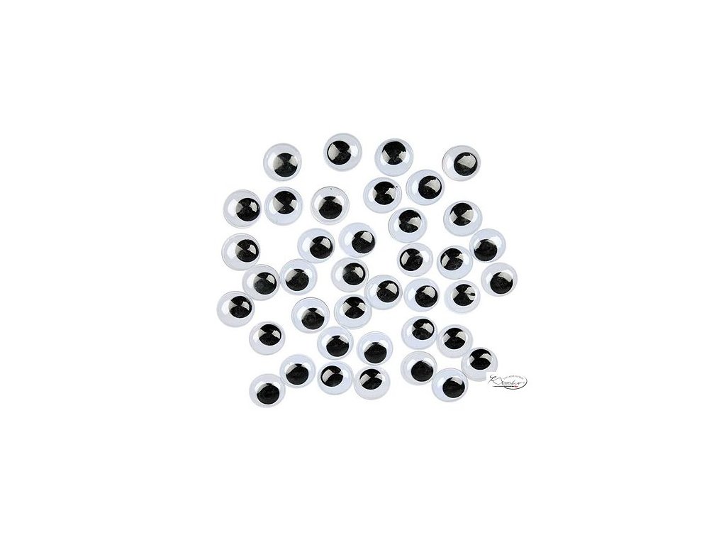 Plastové oči dodají opravdový výraz postavičkám lidí, zvířat, bájným tvorům i ufonům. Záleží jen na vaší fantazii, kam je nalepíte. Jejich velikost je malá, najdou široké uplatnění při tvorbě originálních přání technikou scrapbooking.