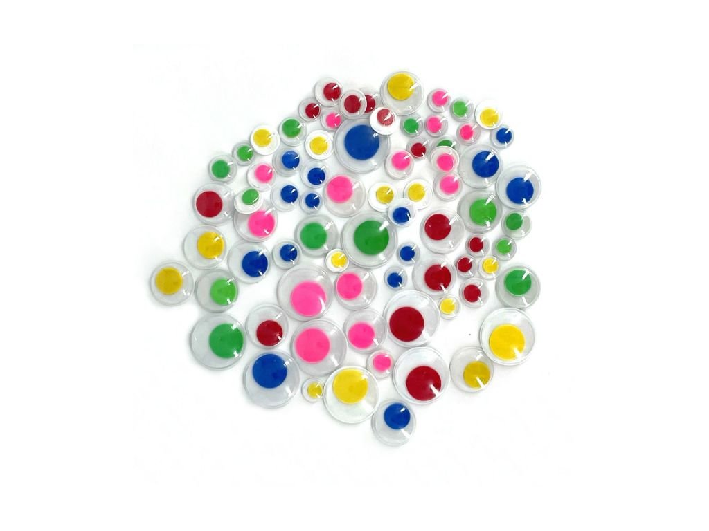 Plastové oči dodají opravdový výraz postavičkám lidí, zvířat, bájným tvorům i ufonům. Záleží jen na vaší fantazii, kam je nalepíte. Jejich velikost je malá, najdou široké uplatnění při tvorbě originálních přání technikou scrapbooking.