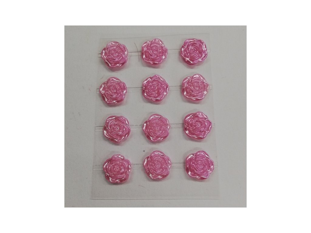 Kamínky ve tvaru růží s perlovým leskem vypadají úžasně. Všechny jsou nalepené na jednom archu podkladové folie, ze které je stačí sejmout. Růže jsou v řadách navzájem spojené lepícím proužkem, takže tvoří pásky. Celkem zde najdete 12 růžiček. Můžete ho i jednotlivě nastříhat.