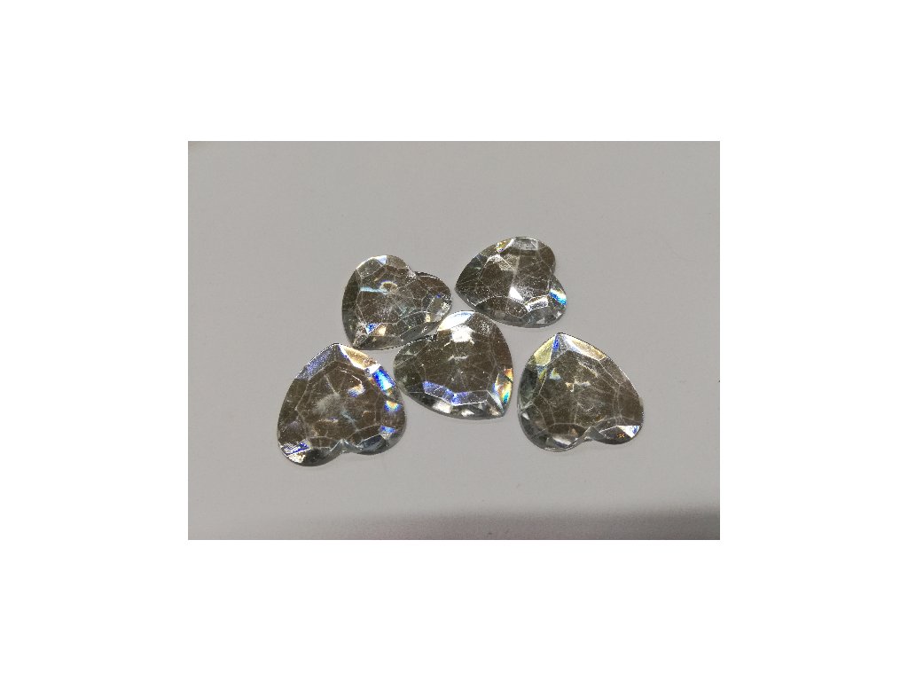 Štrasové kamínky srdce krystal 2,5cm - 5 ks v balení