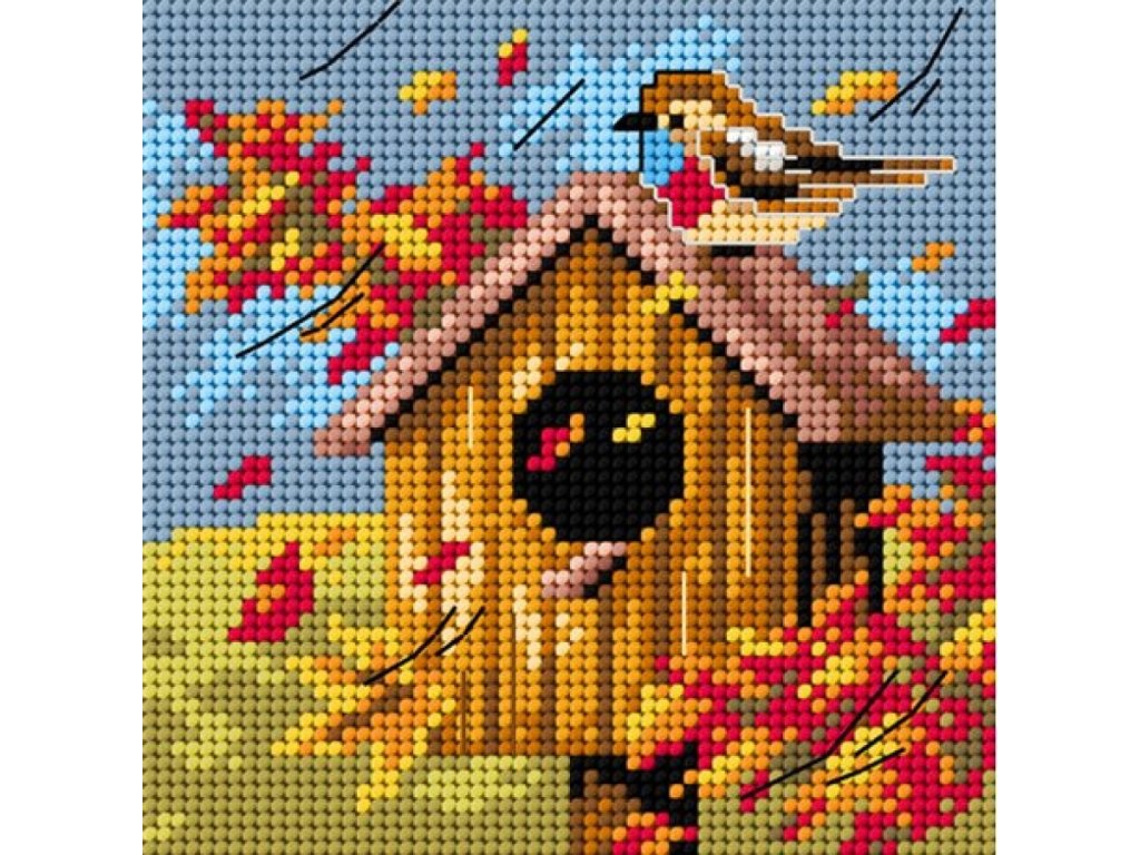 Tištěná předloha pro výšivku - 15 x 15 cm - Budka podzim