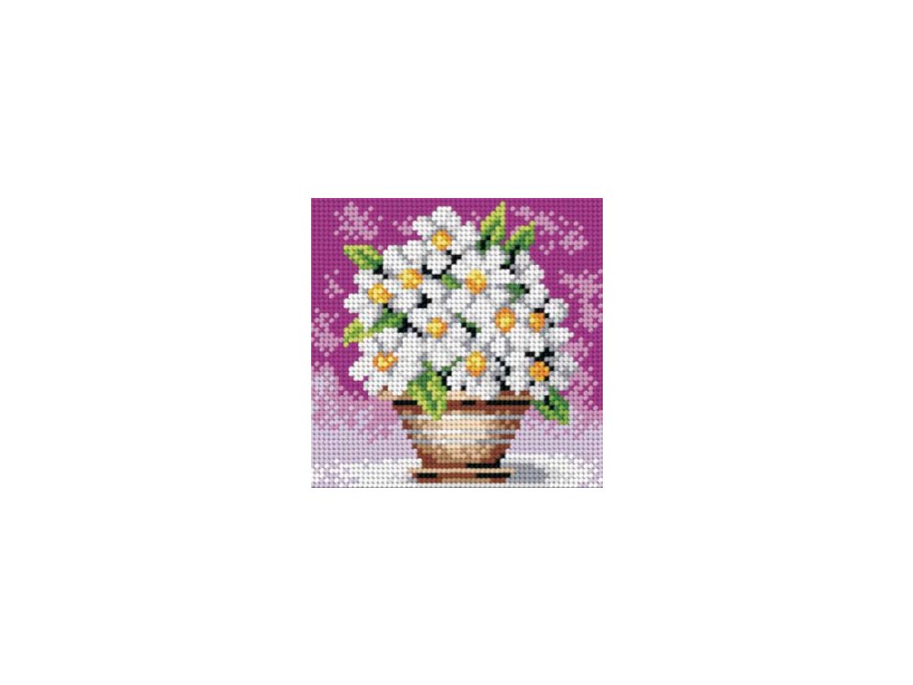 Tištěná předloha pro výšivku - 15 x 15 cm - Kopretiny v květináči