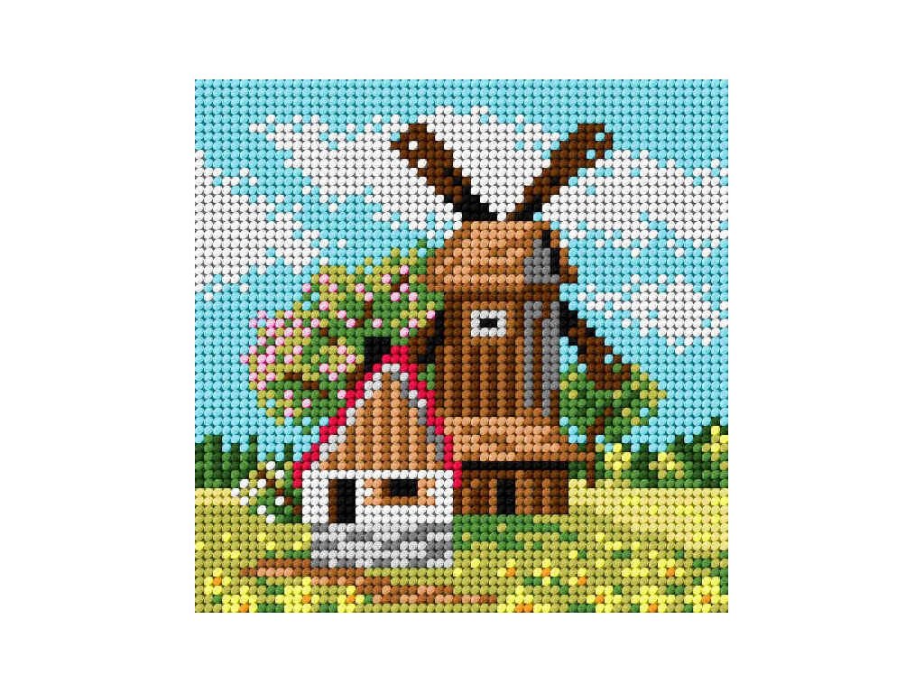 Tištěná předloha pro výšivku - 15 x 15 cm - Mlýn na jaře