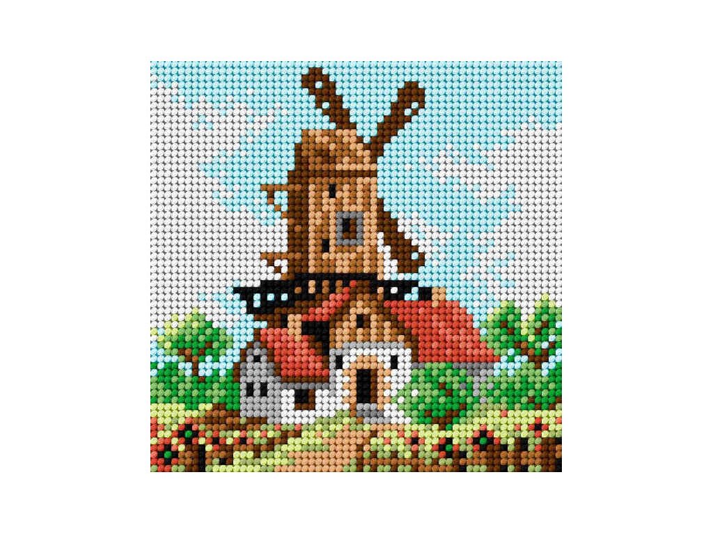 Tištěná předloha pro výšivku - 15 x 15 cm - Mlýn v létě