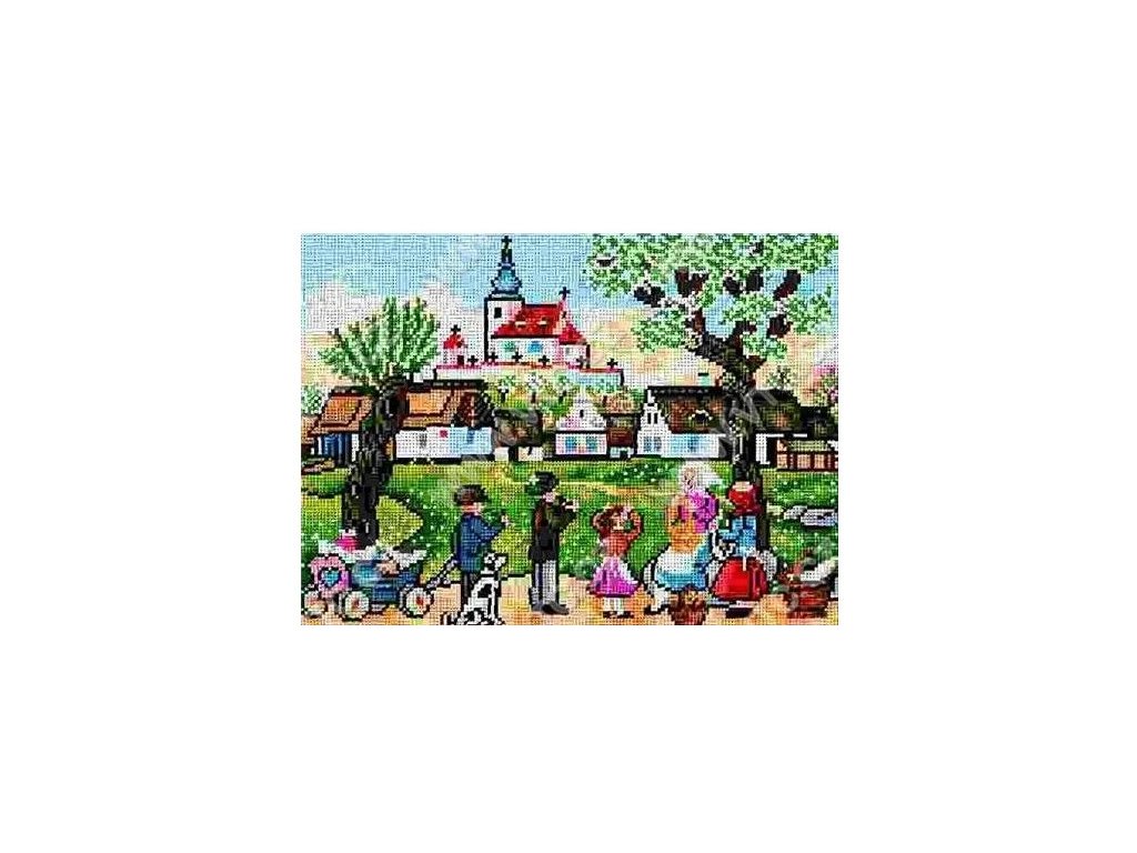 Předtištěný motiv na látce Stramín (40 stehů na 10 cm).