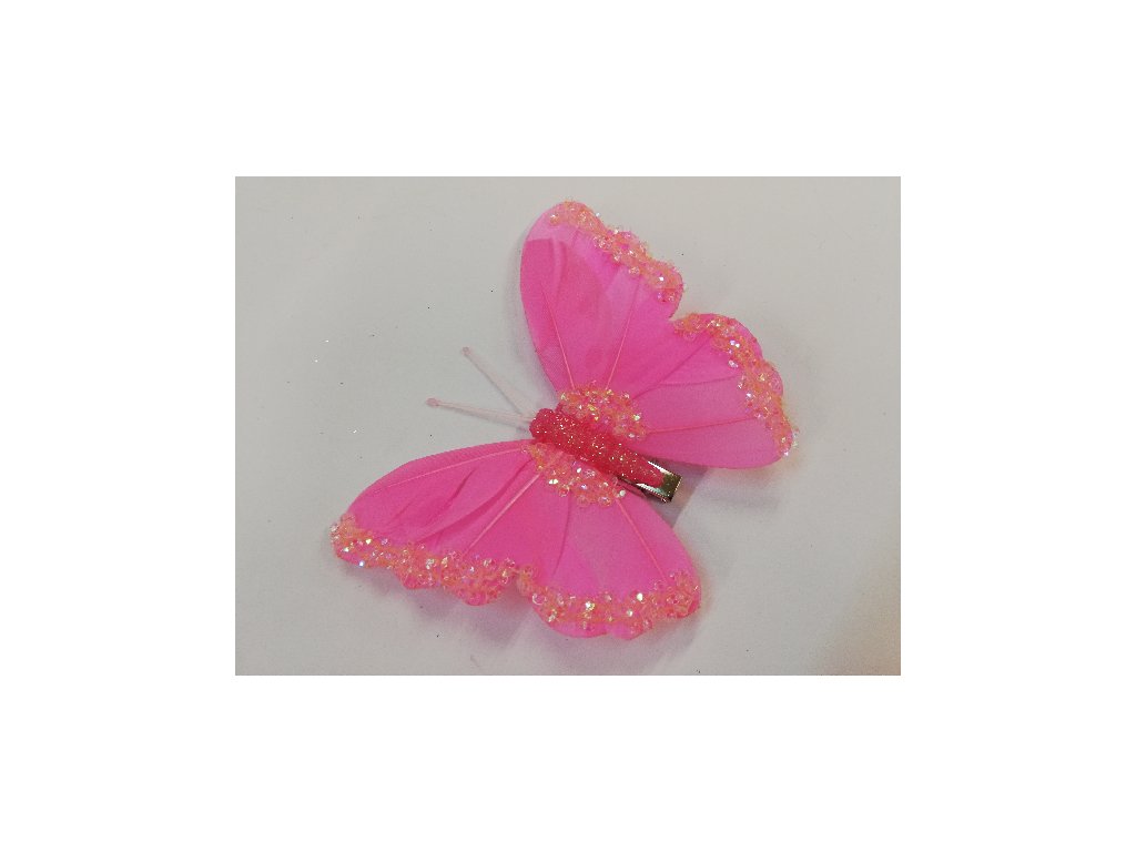 Závěsná dekorace na klip motýl 12cm - růžový s glitry